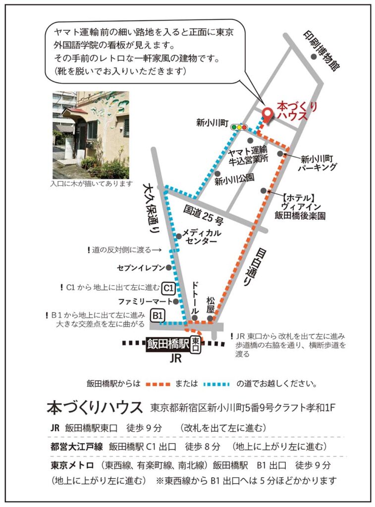 tokyoShioriの製本ワークショップは、飯田橋にある本づくり協会さんの施設《本づくりハウス》をお借りして行っています。本づくりハウス 〒162-0814 東京都新宿区新小川町5-9クラフト孝和1階